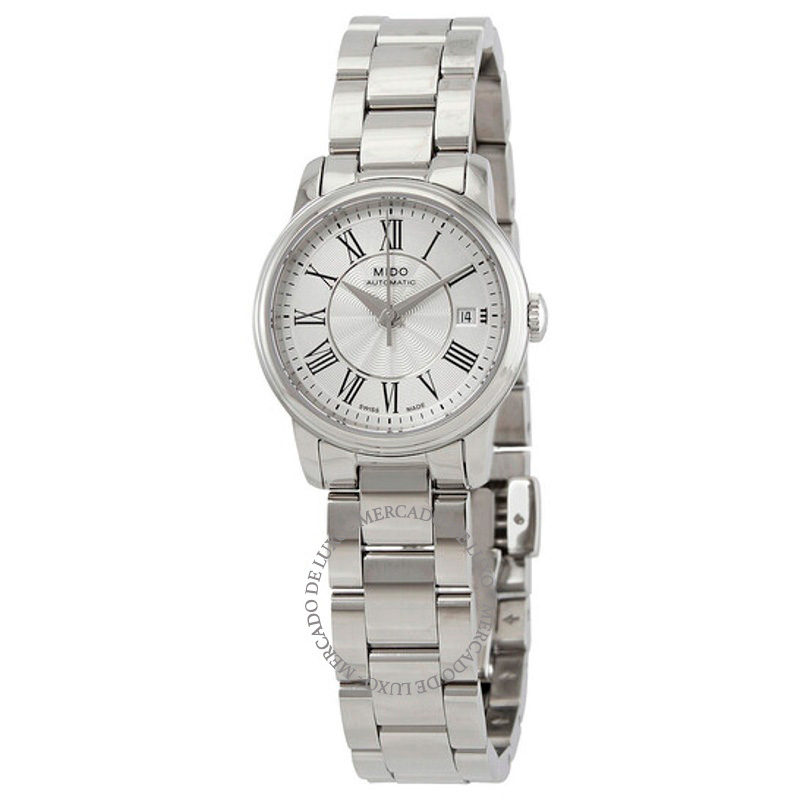 O Mido Baroncelli III Automático Mostrador Prateado mostra como a precisão também pode ser um gesto de estilo. mostrador prateado. Texturas bem resolvidas falam de precisão e cuidado à mão.