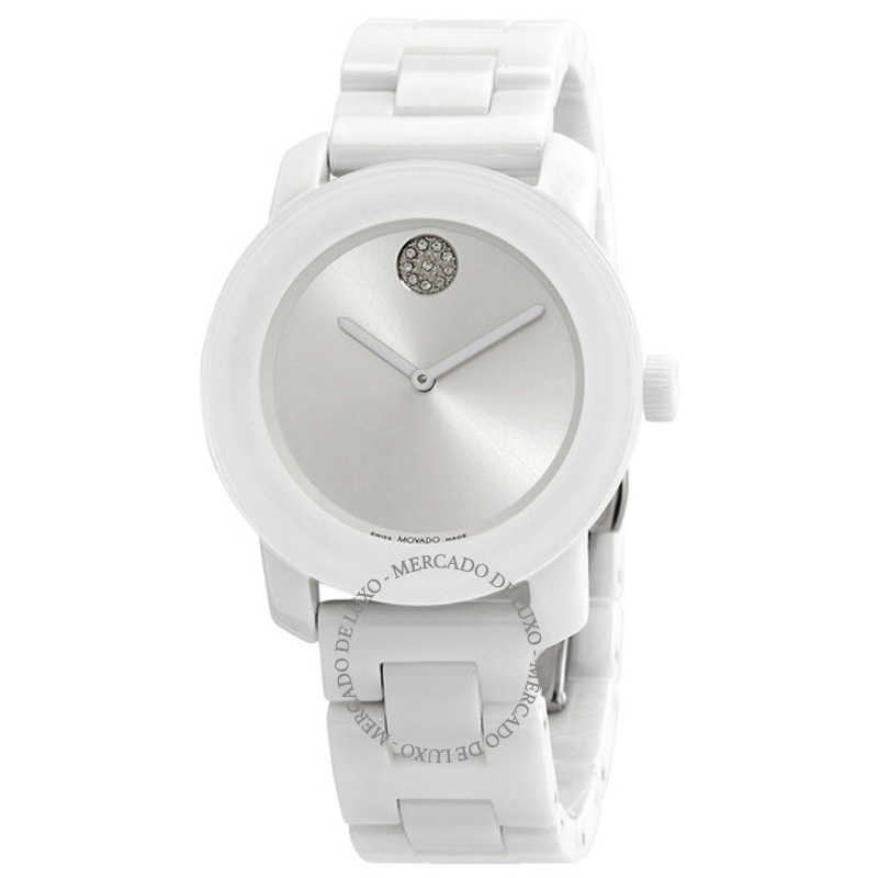O Movado Mostrador de museu em prata e branco de quartzo de cerâmica ousado 36 mm mostra como a precisão também pode ser um gesto de estilo. caixa em cerâmica, 36 mm. Texturas bem resolvidas falam de...