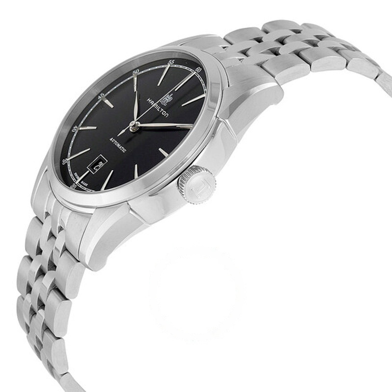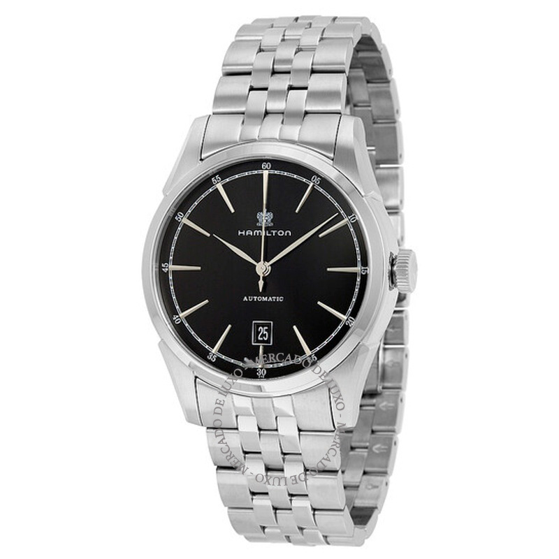 O Hamilton Watch Spirit of Liberty Automático Mostrador Preto 42 mm Equilibra herança e desenho atual em proporções bem resolvidas. Caixa em aço inoxidável, Mostrador preto, 42 mm.