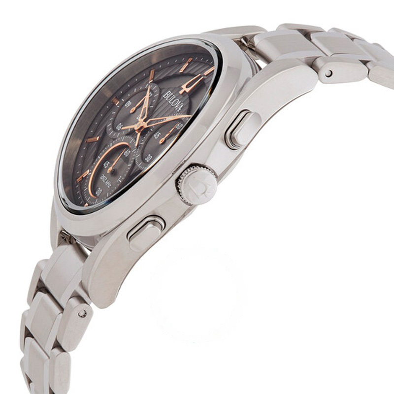 O Bulova Cronógrafo Curvo Quartzo Mostrador Cinza Sintetiza elegância, conforto e um toque de vanguarda.