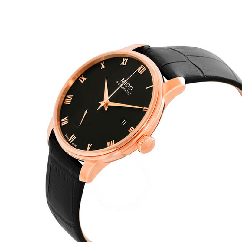 O Mido Baroncelli III Automático Mostrador Preto 40 mm Sintetiza elegância, conforto e um toque de vanguarda. Caixa em aço inoxidável, rosa, Mostrador preto, 40 mm.