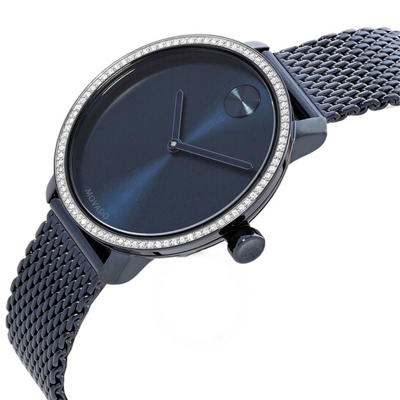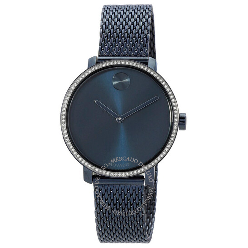O Movado Mostrador azul de quartzo em negrito 34 mm combina proporções clássicas a detalhes de atelier que fazem a diferença no pulso. mostrador azul, 34 mm. Texturas bem resolvidas falam de precisão...