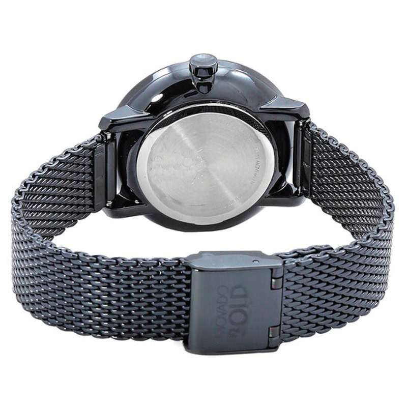 O Movado Mostrador azul de quartzo em negrito 34 mm combina proporções clássicas a detalhes de atelier que fazem a diferença no pulso. mostrador azul, 34 mm. Texturas bem resolvidas falam de precisão e cuidado à mão.