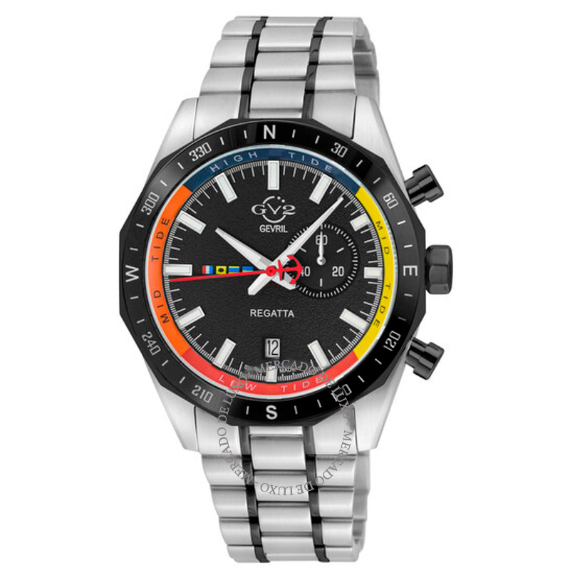 O Gv2 By Gevril Mostrador preto Regatta 42 mm Sintetiza elegância, conforto e um toque de vanguarda. Caixa em aço inoxidável, Mostrador preto, 42 mm.