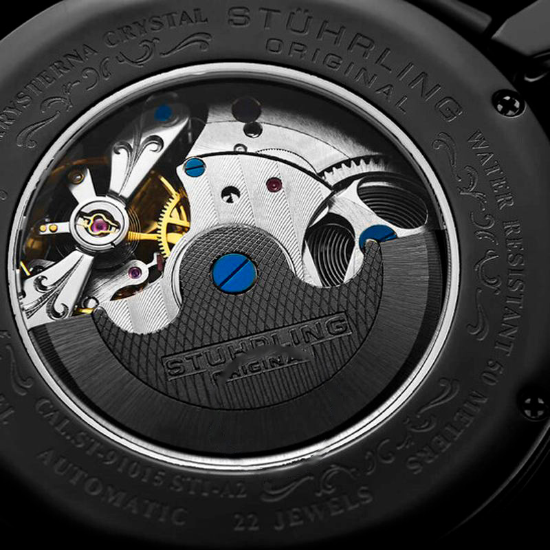 O Stührling Original Mostrador prateado automático Legacy Design pensado para durar, com superfícies que capturam a luz com sutileza. Mostrador prateado.O conjunto mecânico é projetado para...