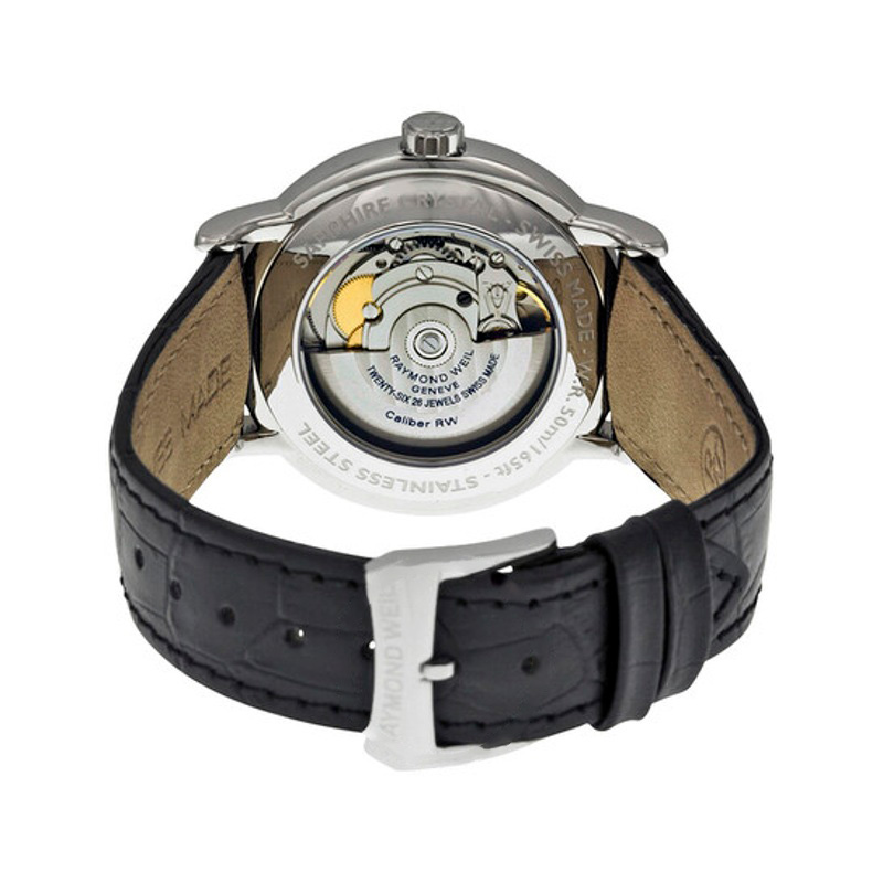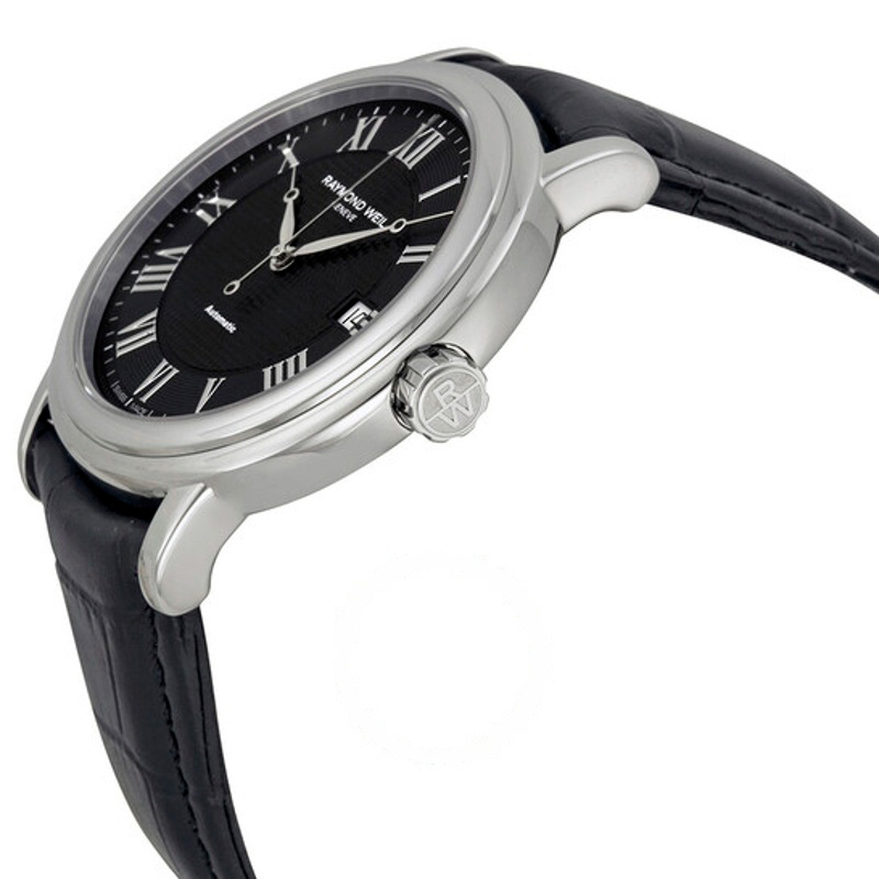 O Raymond Weil Maestro Automático Mostrador Preto 39 mm Traz uma leitura arquitetônica do tempo com superfícies bem trabalhadas. Caixa em aço inoxidável, Mostrador preto, 39 mm.