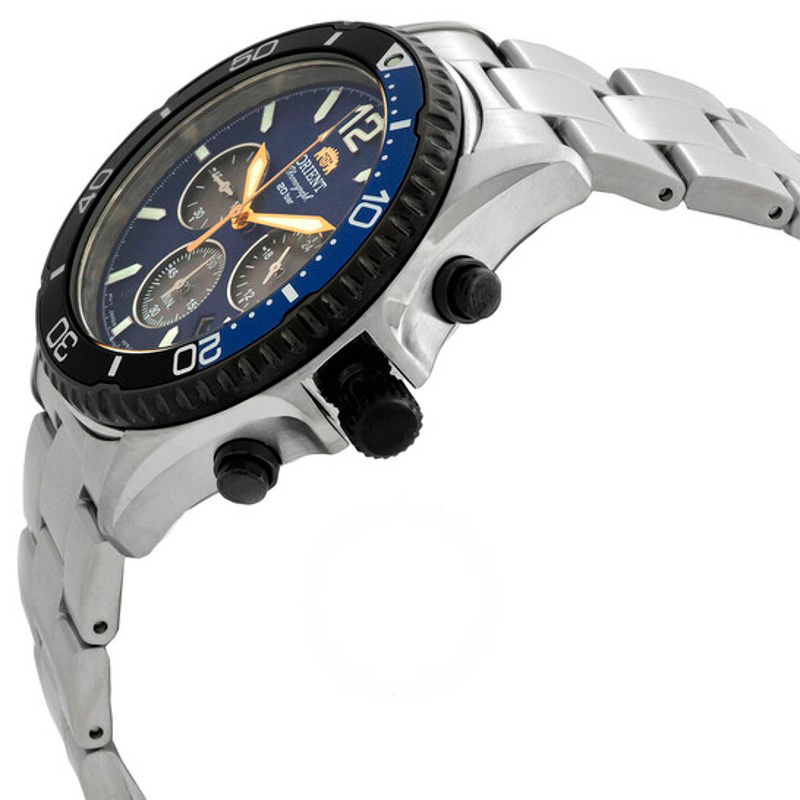 O Orient Cronógrafo esportivo movido a energia solar com mostrador azul 42 mm Sintetiza elegância, conforto e um toque de vanguarda. Caixa em aço inoxidável, Mostrador azul, 42 mm.