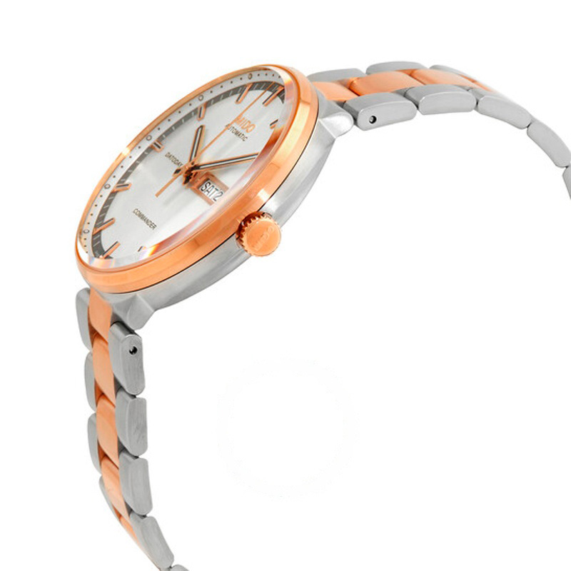 O Mido Commander II Automático Mostrador Prateado 40 mm Interpreta os códigos da casa com serenidade e atenção à luz. Caixa em aço inoxidável, rosa, Mostrador prateado, 40 mm.