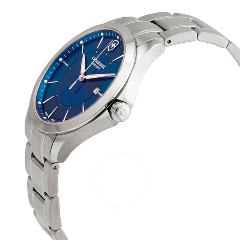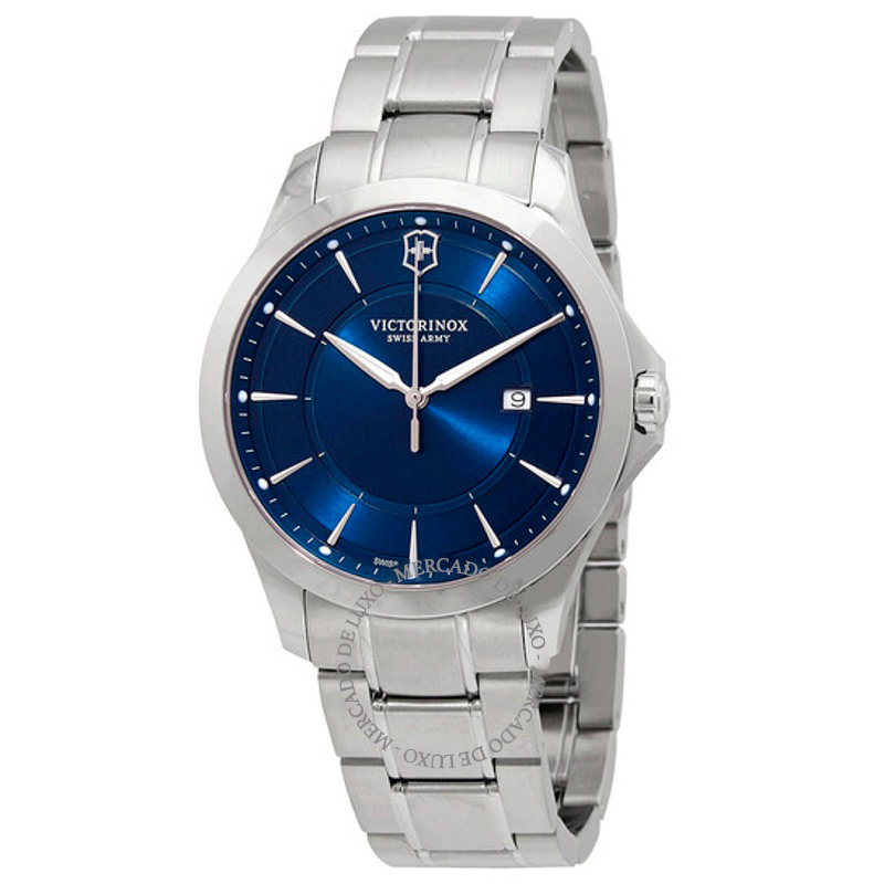 O Victorinox Mostrador Azul Quartzo Alliance 40 mm Mistura precisão geométrica e brilho contido em um gesto refinado. Caixa em aço inoxidável, Mostrador azul, 40 mm.