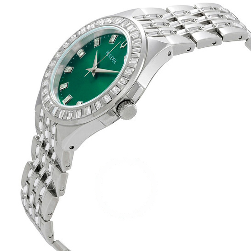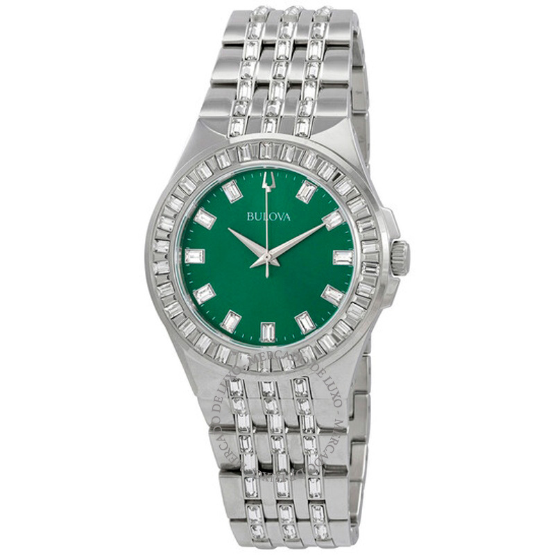 O Bulova Mostrador verde de cristal de quartzo 42 mm Interpreta os códigos da casa com serenidade e atenção à luz. Mostrador verde, 42 mm.No coração, a mecânica suíça é regulada para estabilidade...