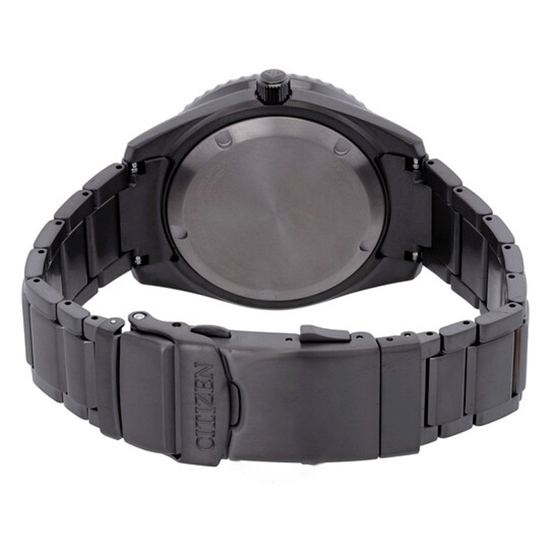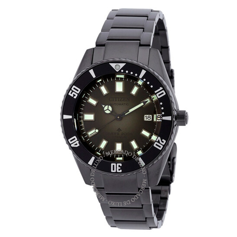O Citizen Promaster Dive Automático Mostrador Cinza 42 mm Traz uma leitura arquitetônica do tempo com superfícies bem trabalhadas. Caixa em titânio, Mostrador preto, 42 mm.