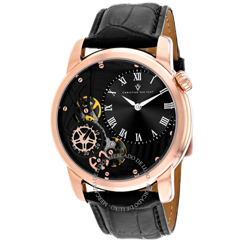 O Christian Van Sant Sprocket Auto-Quartz Mostrador Preto 44 mm Traz uma leitura arquitetônica do tempo com superfícies bem trabalhadas. Caixa em aço inoxidável, rosa, Mostrador preto, 44 mm.No...