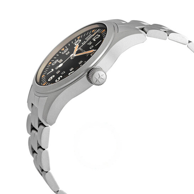 O Hamilton Watch Corda de campo cáqui mostrador preto 42 mm Sintetiza elegância, conforto e um toque de vanguarda. Caixa em aço inoxidável, Mostrador preto, 42 mm.