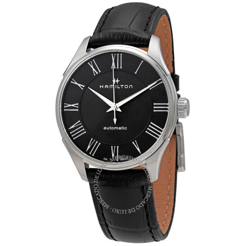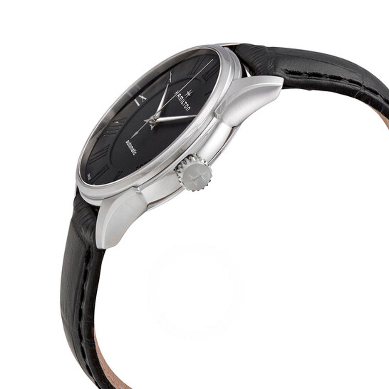 O Hamilton Watch Jazzmaster Automático Mostrador Preto 40 mm Equilibra herança e desenho atual em proporções bem resolvidas. Caixa em aço inoxidável, Mostrador preto, 40 mm.