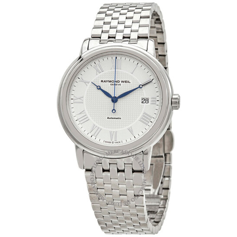 O Raymond Weil Maestro Automático Mostrador Prateado 39 mm Aposta em linhas limpas e volume preciso — luxo que não grita. Caixa em aço inoxidável, Mostrador azul, 39 mm.