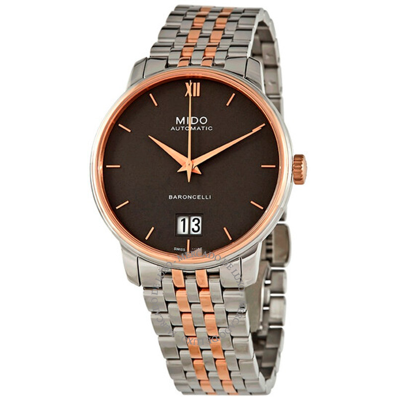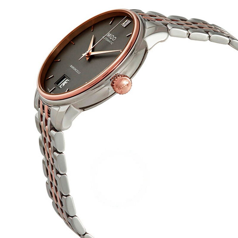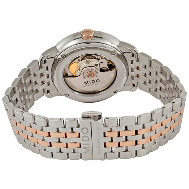 O Mido Baroncelli Big Date Automático 40 mm Traz uma leitura arquitetônica do tempo com superfícies bem trabalhadas. Caixa em aço inoxidável, rosa, Mostrador prateado, 40 mm.