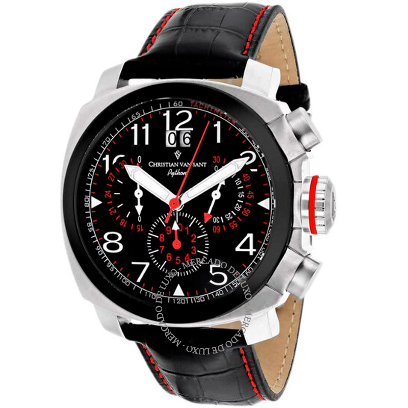 O Christian Van Sant Grand Python Chronograph Quartz Mostrador Preto 48 mm Interpreta os códigos da casa com serenidade e atenção à luz. Caixa em aço inoxidável, Mostrador preto, 48 mm.