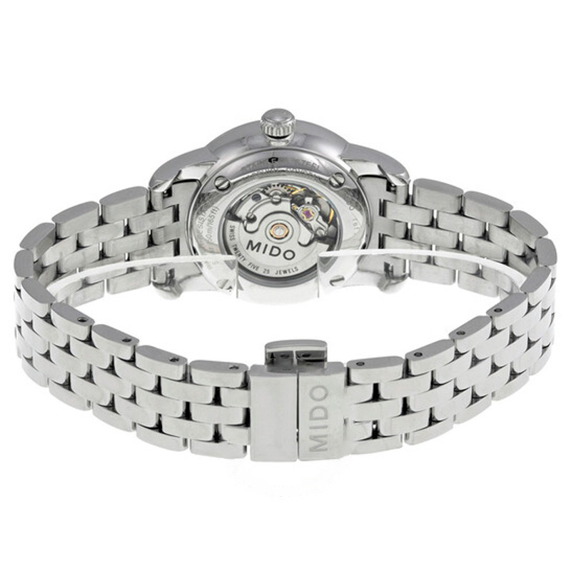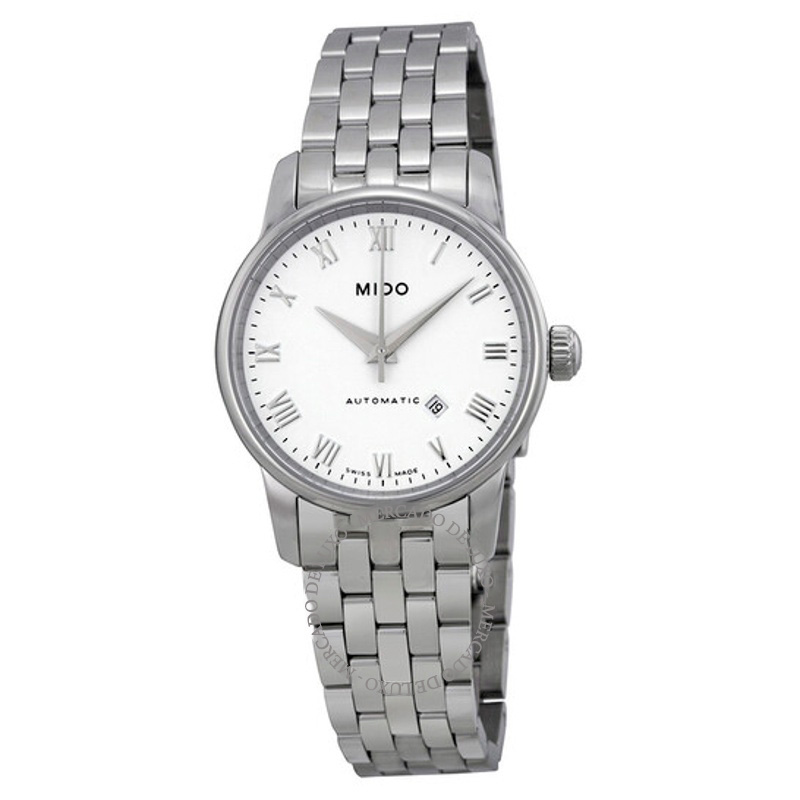 O Mido Baroncelli Automático Mostrador Branco 29 mm é pensado para a vida real: elegante, atual e fiel à herança da manufatura. caixa em aço inoxidável, mostrador prateado, 29 mm. Texturas bem resolvidas falam de precisão e cuidado à mão.