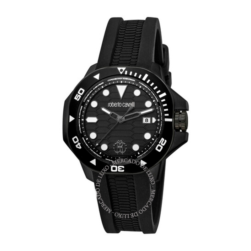 O Roberto Cavalli Mostrador preto de quartzo da moda 42 mm Interpreta os códigos da casa com serenidade e atenção à luz. Mostrador preto, 42 mm.