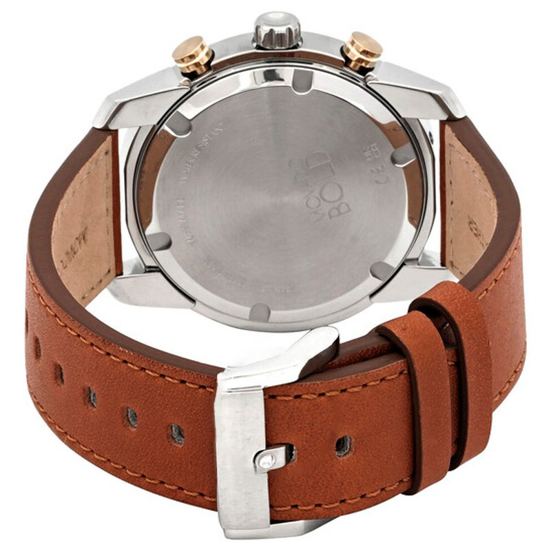 A manufatura calibra o movimento pensando em precisão, eficiência e manutenção tranquila. Movimento quartzo, complicações: data, cronógrafo, WR 50 m, pulseira c.