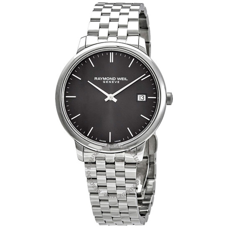 O Raymond Weil Mostrador Toccata Quartz Grey 39 mm Traz uma leitura arquitetônica do tempo com superfícies bem trabalhadas. Caixa em aço inoxidável, Mostrador prateado, 39 mm.