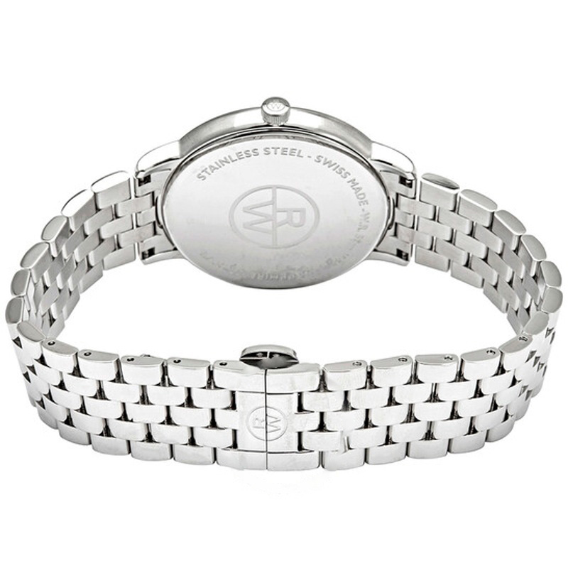 No coração, a mecânica suíça é regulada para estabilidade cronométrica e longa vida. Movimento quartzo, complicações: data, vidro safira, WR 50 m, pulseira bracelete metálico.