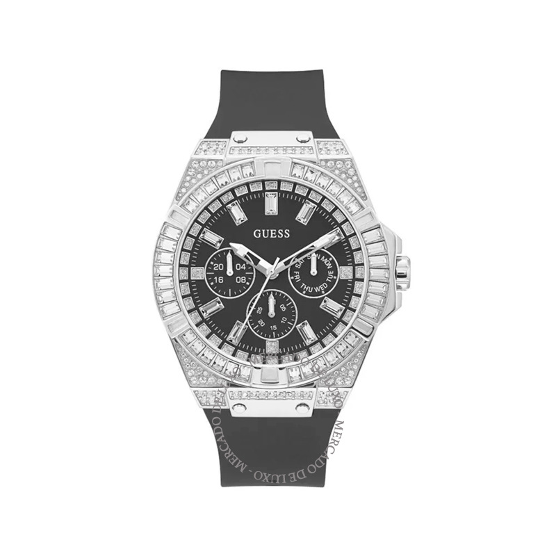O Guess Zeus GW0208G1 traduz a linguagem da alta relojoaria com proporções impecáveis e acabamento de ateliê. Com caixa em aço inoxidável, mostrador preto, entrega presença sofisticada e brilho discreto. Uma criação pensada para atravessar tendências com elegância.