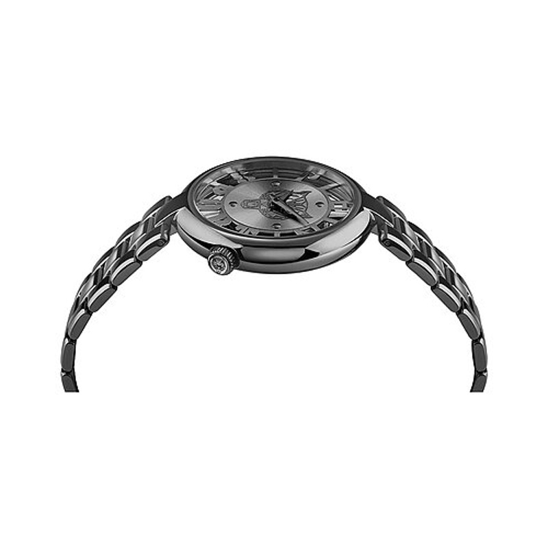 Caixa em aço de presença, mostradores com elementos 3D, aplicações de cristal e logotipia marcam a estética do modelo.