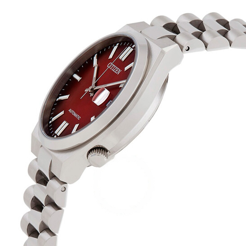 O Citizen Mostrador automático Tsuyosa Borgonha 40 mm Sintetiza elegância, conforto e um toque de vanguarda. Caixa em aço inoxidável, Mostrador prateado, 40 mm.