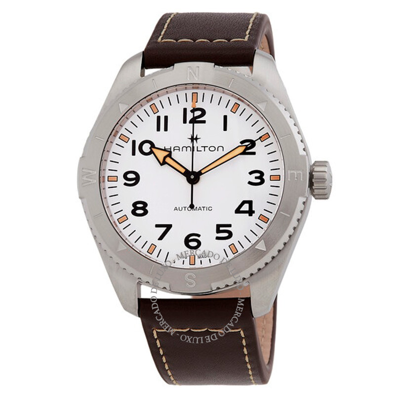 O Hamilton Watch Khaki Field Expedition Automático Mostrador Branco 41 mm Aposta em linhas limpas e volume preciso — luxo que não grita. Caixa em aço inoxidável, Mostrador preto, 41 mm.A manufatura...