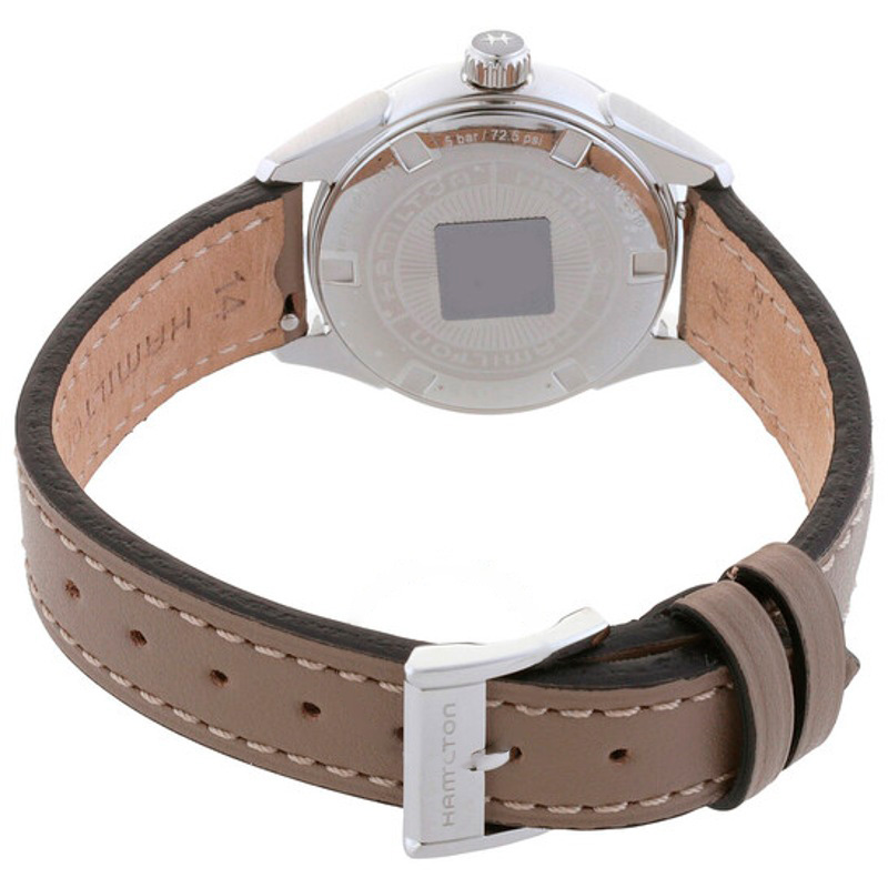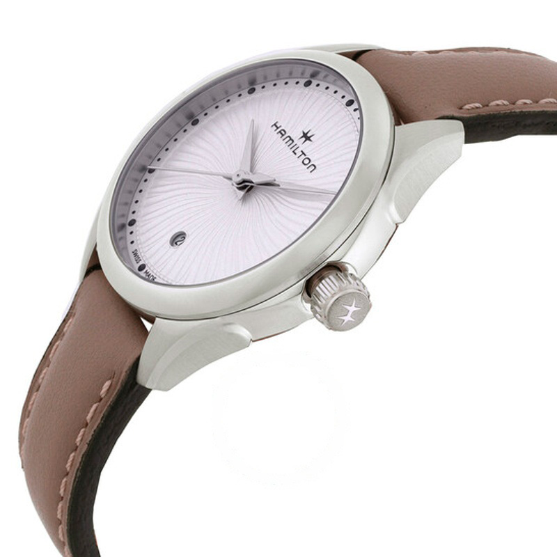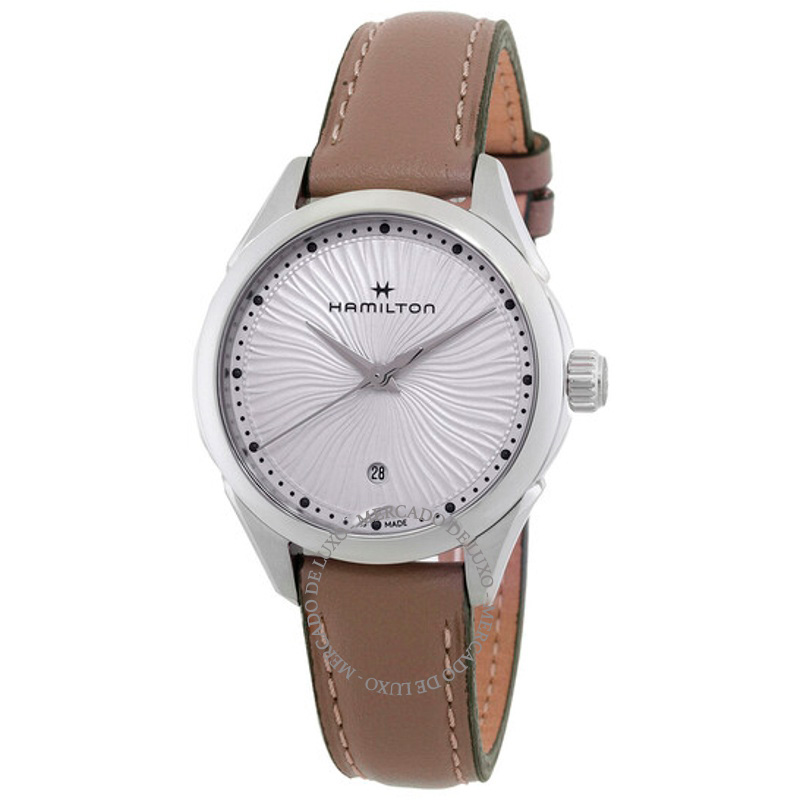 O Hamilton Watch Jazzmaster Lady Quartzo Mostrador Branco 30 mm é um estudo de volumes e reflexos: caixa esculpida, arestas suaves, presença contida. caixa em aço inoxidável, mostrador prateado, 30 mm. Acabamentos precisos revelam a experiência do ateliê em cada aresta.