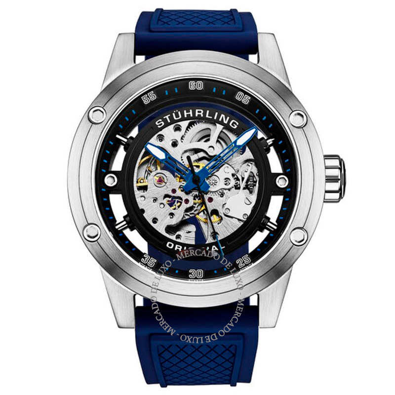 O Stührling Original Mostrador preto automático Legacy 50 mm Sintetiza elegância, conforto e um toque de vanguarda. Mostrador azul, 50 mm.