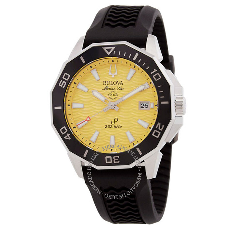 O Bulova Quartzo Estrela Marinho 43 mm Aposta em linhas limpas e volume preciso — luxo que não grita. Caixa em aço inoxidável, Mostrador preto, 43 mm.No coração, a mecânica suíça é regulada para...