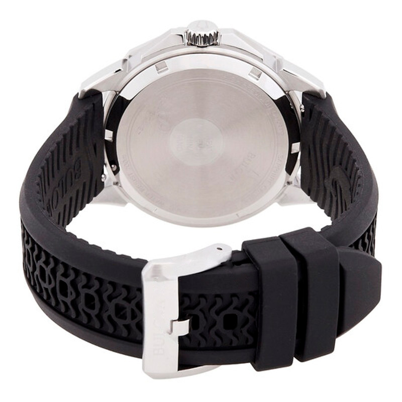 O Bulova Quartzo Estrela Marinho 43 mm Aposta em linhas limpas e volume preciso — luxo que não grita. Caixa em aço inoxidável, Mostrador preto, 43 mm.