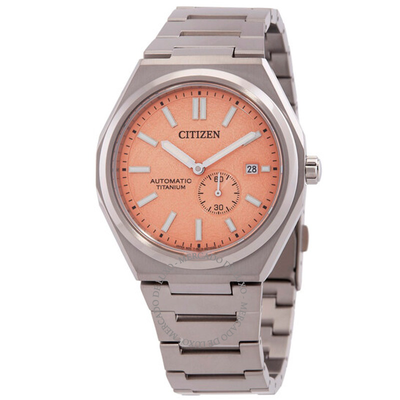 O Citizen Zenshin Automaticouro Salmon Dial 40 mm Interpreta os códigos da casa com serenidade e atenção à luz. Caixa em titânio, Mostrador prateado, 40 mm.