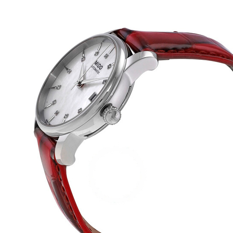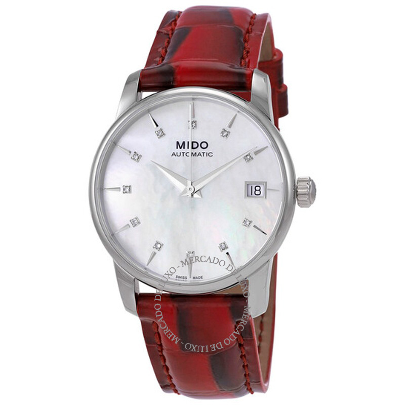 O Mido Baroncelli Automático Diamante Branco Madrepérola Mostrador 33 mm equilibra superfícies polidas e escovadas para um jogo de luz refinado. caixa em aço inoxidável, luneta cravejada de,...