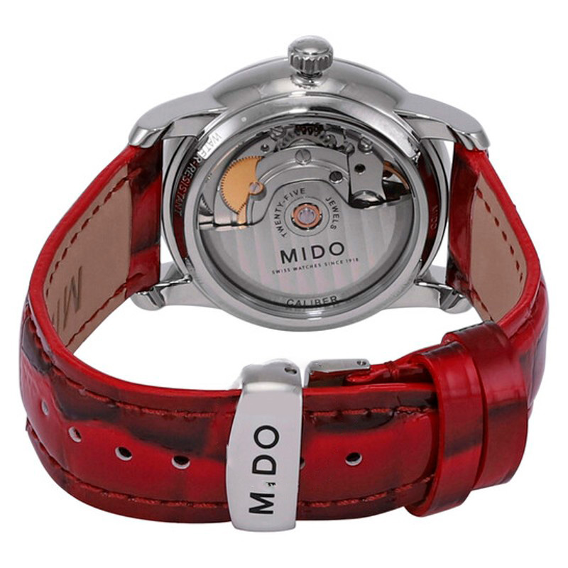 O Mido Baroncelli Automático Diamante Branco Madrepérola Mostrador 33 mm equilibra superfícies polidas e escovadas para um jogo de luz refinado. caixa em aço inoxidável, luneta cravejada de, mostrador madrepérola com, 33 mm. Texturas bem resolvidas falam de precisão e cuidado à mão.
