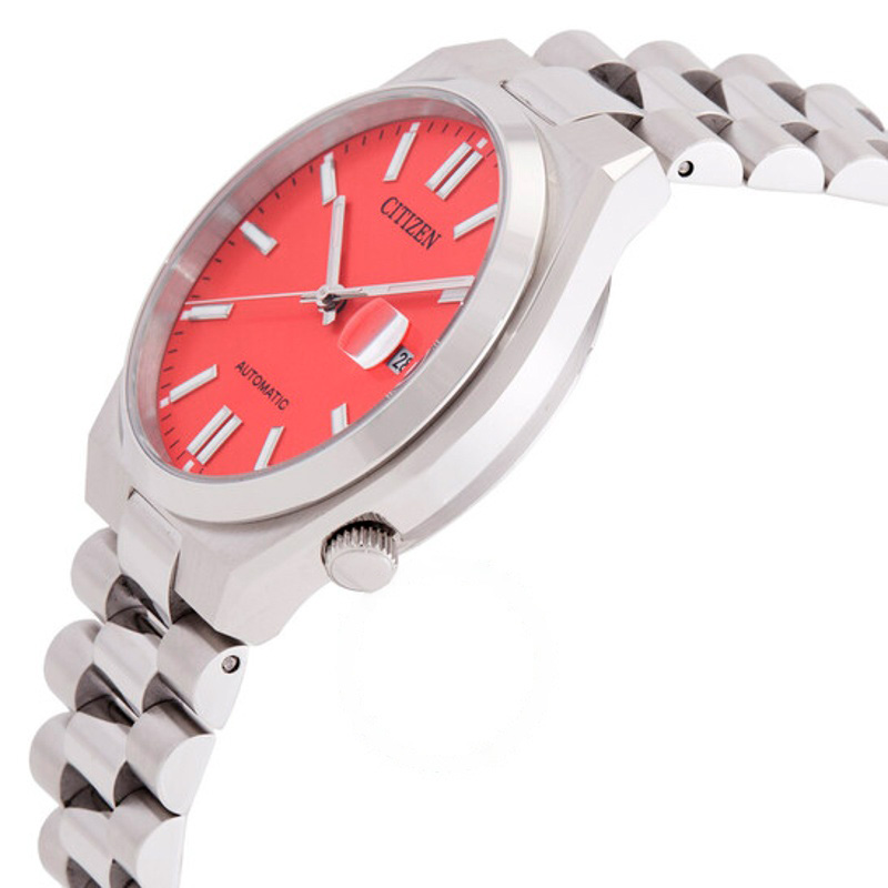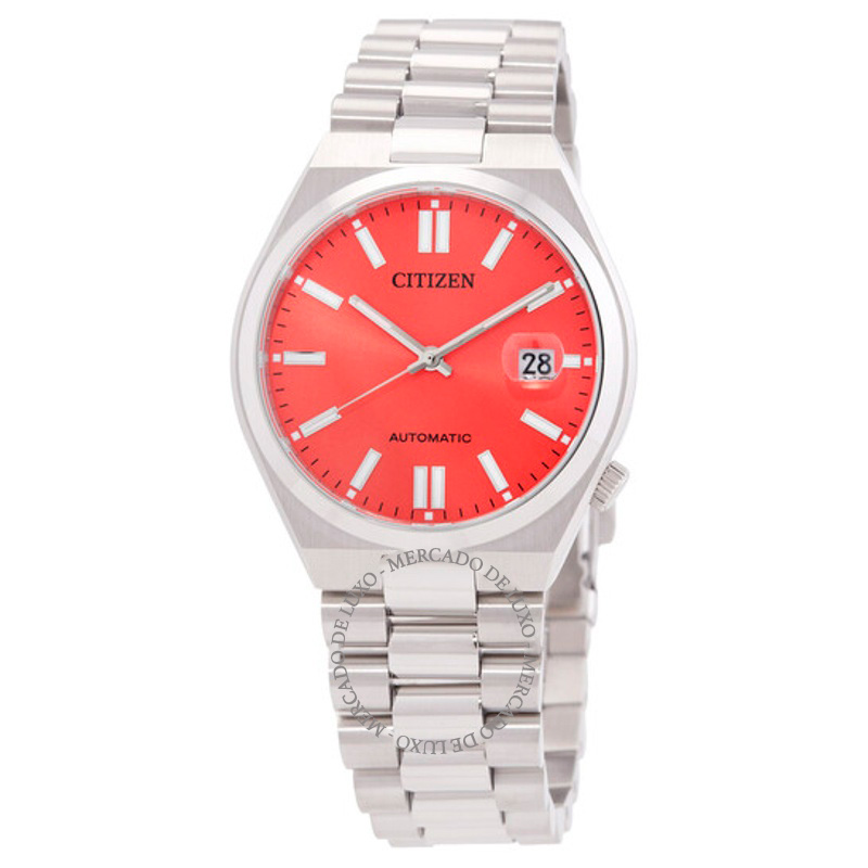 O Citizen Tsuyosa Automático Mostrador Vermelho Brilhante 40 mm Aposta em linhas limpas e volume preciso — luxo que não grita. Caixa em aço inoxidável, Mostrador prateado, 40 mm.