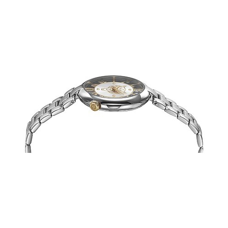Caixa em aço de presença, mostradores com elementos 3D, aplicações de cristal e logotipia marcam a estética do modelo.