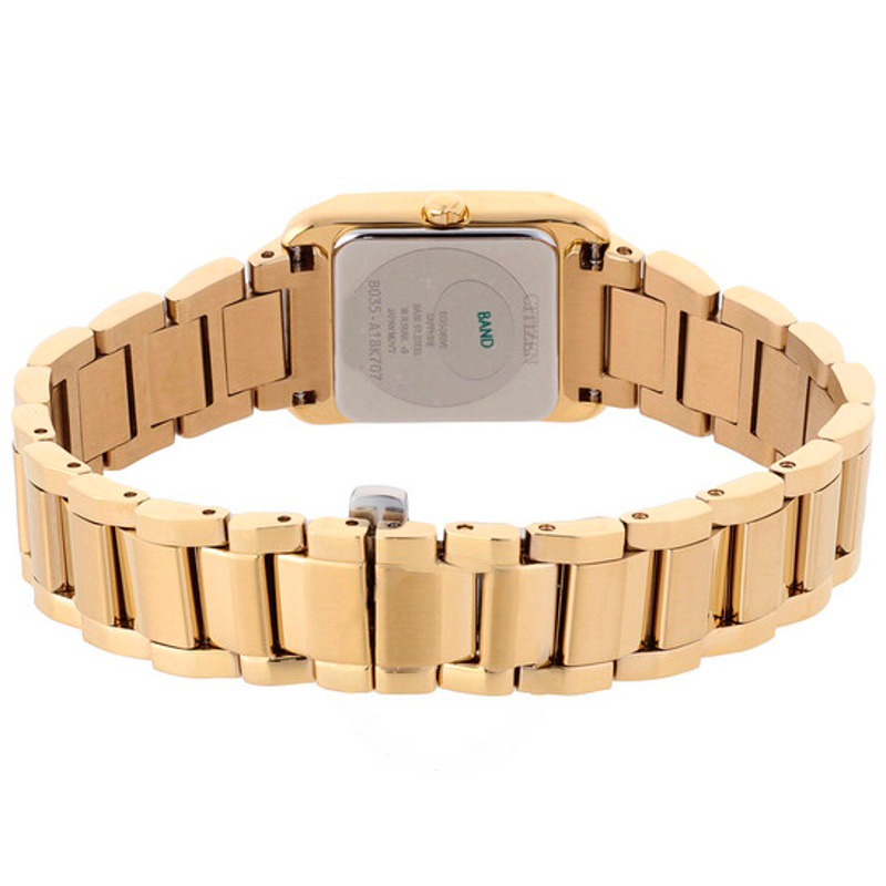 O Citizen Mostrador Branco Bianca 21 mm apresenta um estudo de volumes, texturas e reflexos digno de vitrine. caixa em aço inoxidável, mostrador azul, 21 mm. Resultado visual com faces facetadas e arestas suaves.