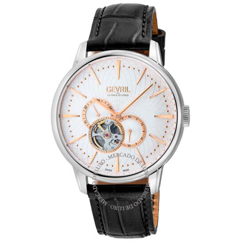 O Gevril Mulberry Automático Mostrador Branco Equilibra herança e desenho atual em proporções bem resolvidas.A arquitetura do mecanismo privilegia robustez estrutural e regularidade de marcha....