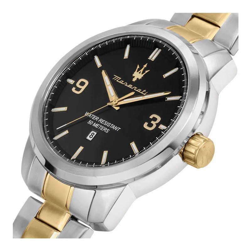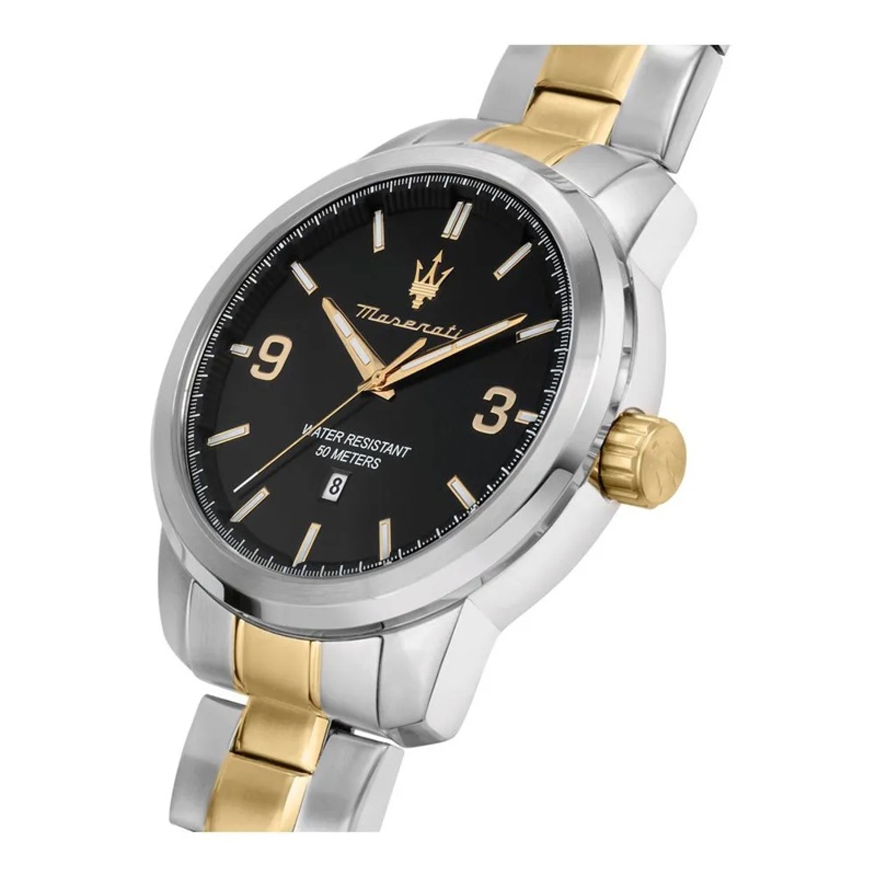 O Maserati Successo 3H Black Dial Br Ss+Yg 44 mm traduz a linguagem da alta relojoaria com proporções impecáveis e acabamento de ateliê. Com caixa em aço inoxidável, mostrador preto, tamanho 44 mm, entrega presença sofisticada e brilho discreto. Uma criação pensada para atravessar tendências com elegância.
