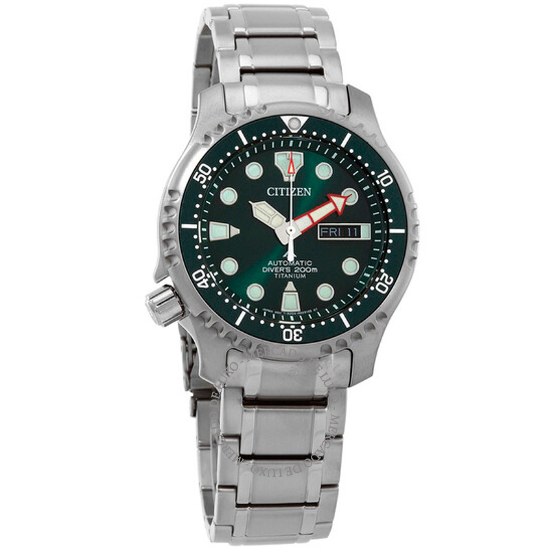 O Citizen Promaster Automático Mostrador Verde 42 mm Aposta em linhas limpas e volume preciso — luxo que não grita. Caixa em aço inoxidável, titânio, Mostrador prateado, 42 mm.