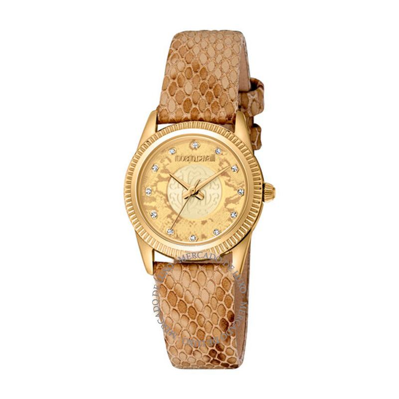O Roberto Cavalli de Moda Quartzo Mostrador Champanhe 28 mm sintetiza elegância e conforto, pensado para o ritmo de agendas reais. 28 mm. Os acabamentos revelam cuidado de atelier e respeito à matéria.