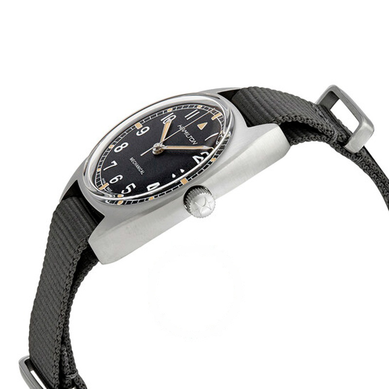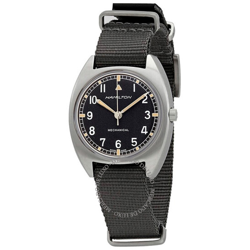 O Hamilton Watch Khaki Pilot Pioneer Corda manual 33 mm Aposta em linhas limpas e volume preciso — luxo que não grita. Caixa em aço inoxidável, Mostrador preto, 33 mm.