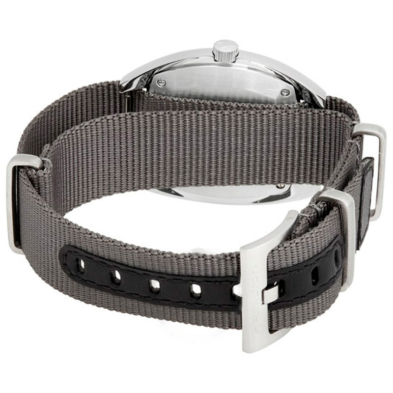 Tecnologia e artesanato se encontram numa construção confiável e confortável no uso. Movimento manual, calibre H-50, frequência 21600 vph, WR 100 m.