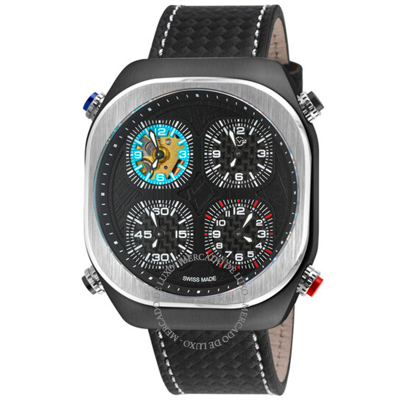 O Gv2 By Gevril Quattro Quartz Mostrador Preto 54 mm Traz uma leitura arquitetônica do tempo com superfícies bem trabalhadas. Caixa em aço inoxidável, Mostrador preto, 54 mm.