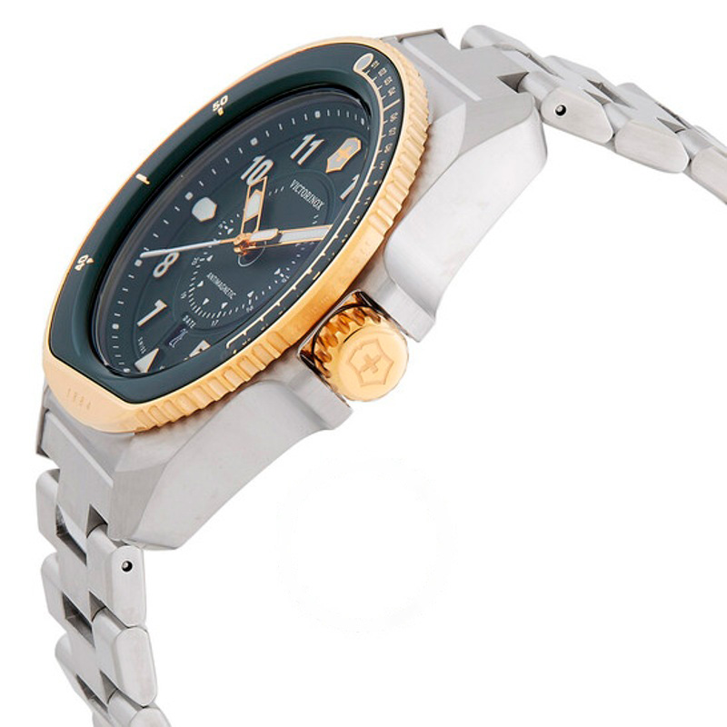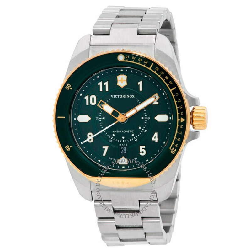 O Victorinox Journey 1884 Cronógrafo Quartzo Mostrador Verde 43 mm Traz uma leitura arquitetônica do tempo com superfícies bem trabalhadas. Caixa em aço inoxidável, cerâmica, Luneta cerâmica, Mostrador prateado, 43 mm.