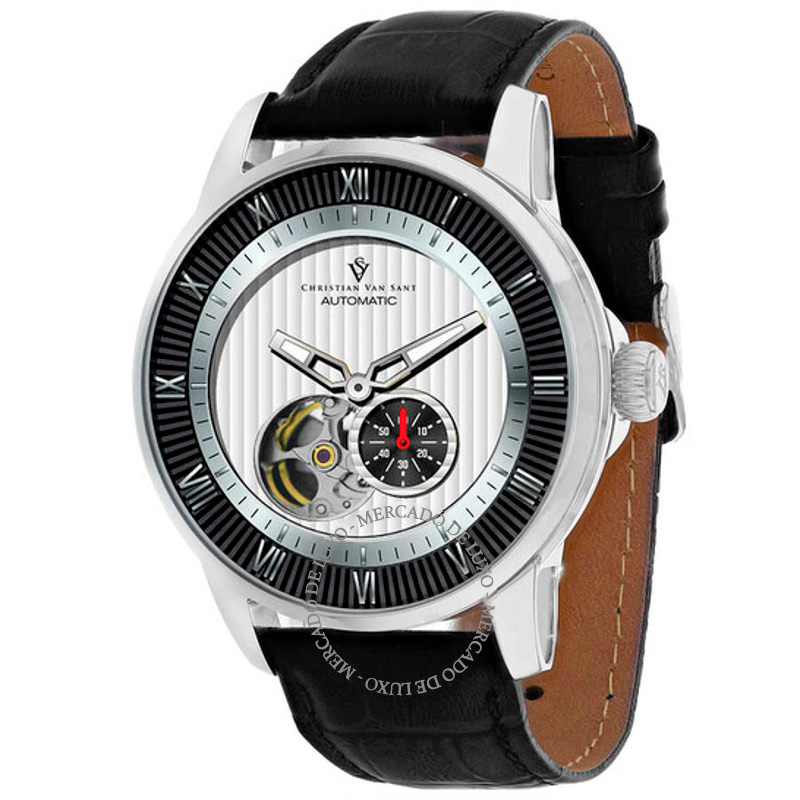 O Christian Van Sant Viscay Automático Mostrador Branco 42 mm Traz uma leitura arquitetônica do tempo com superfícies bem trabalhadas. Caixa em aço inoxidável, Mostrador preto, 42 mm.