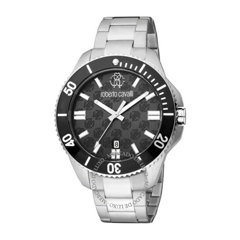 O Roberto Cavalli Mostrador preto de quartzo da moda 44 mm Interpreta os códigos da casa com serenidade e atenção à luz. Mostrador preto, 44 mm.